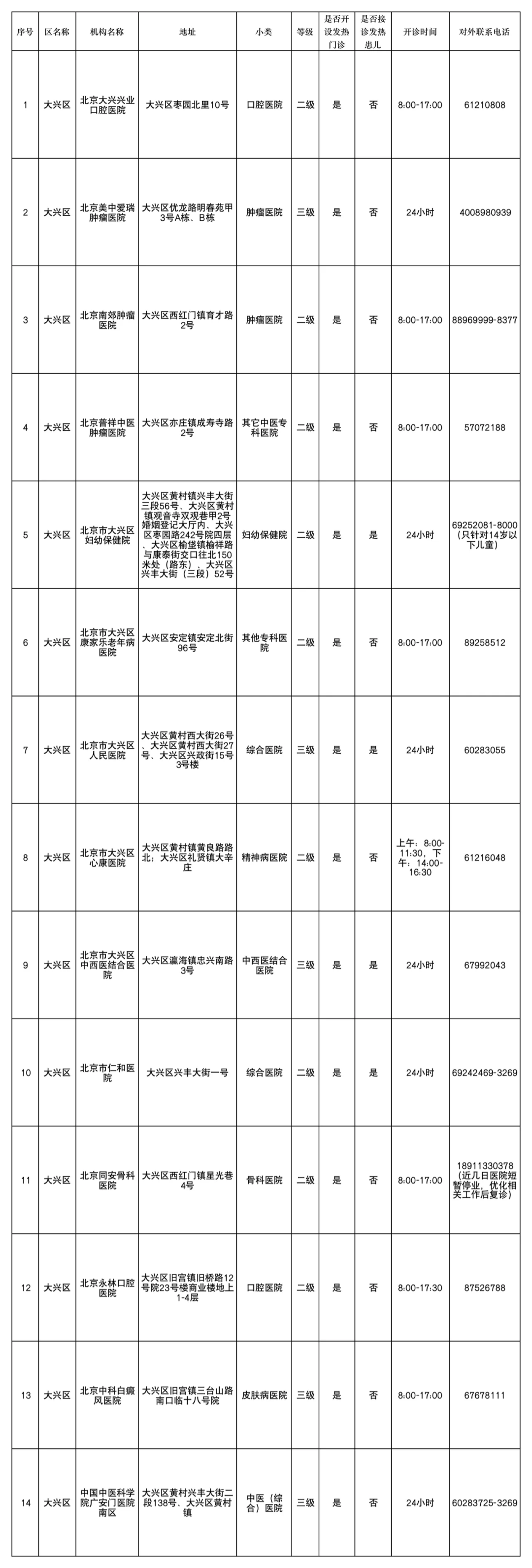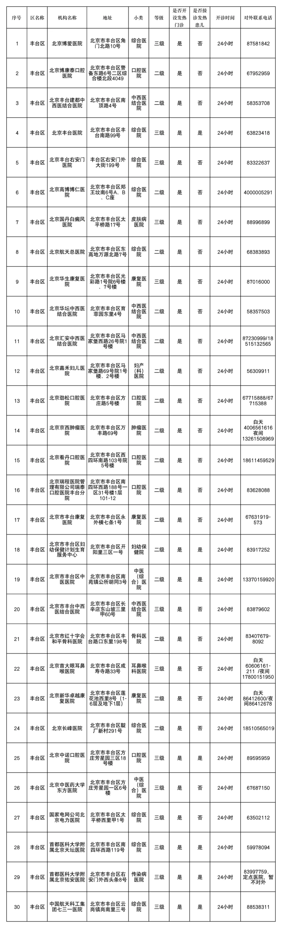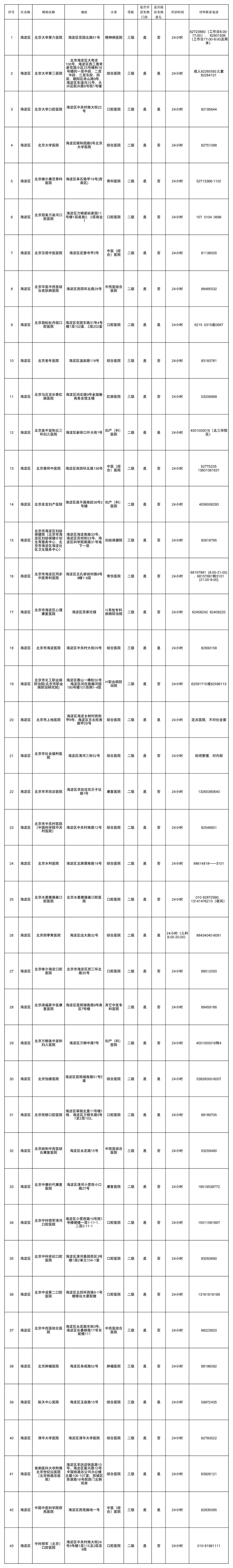 为方便群众就医,北京市卫健委汇总并公布了截至12月10日各区卫生健康委报告的二级以上医院发热门诊(诊室)设置名单信息。
