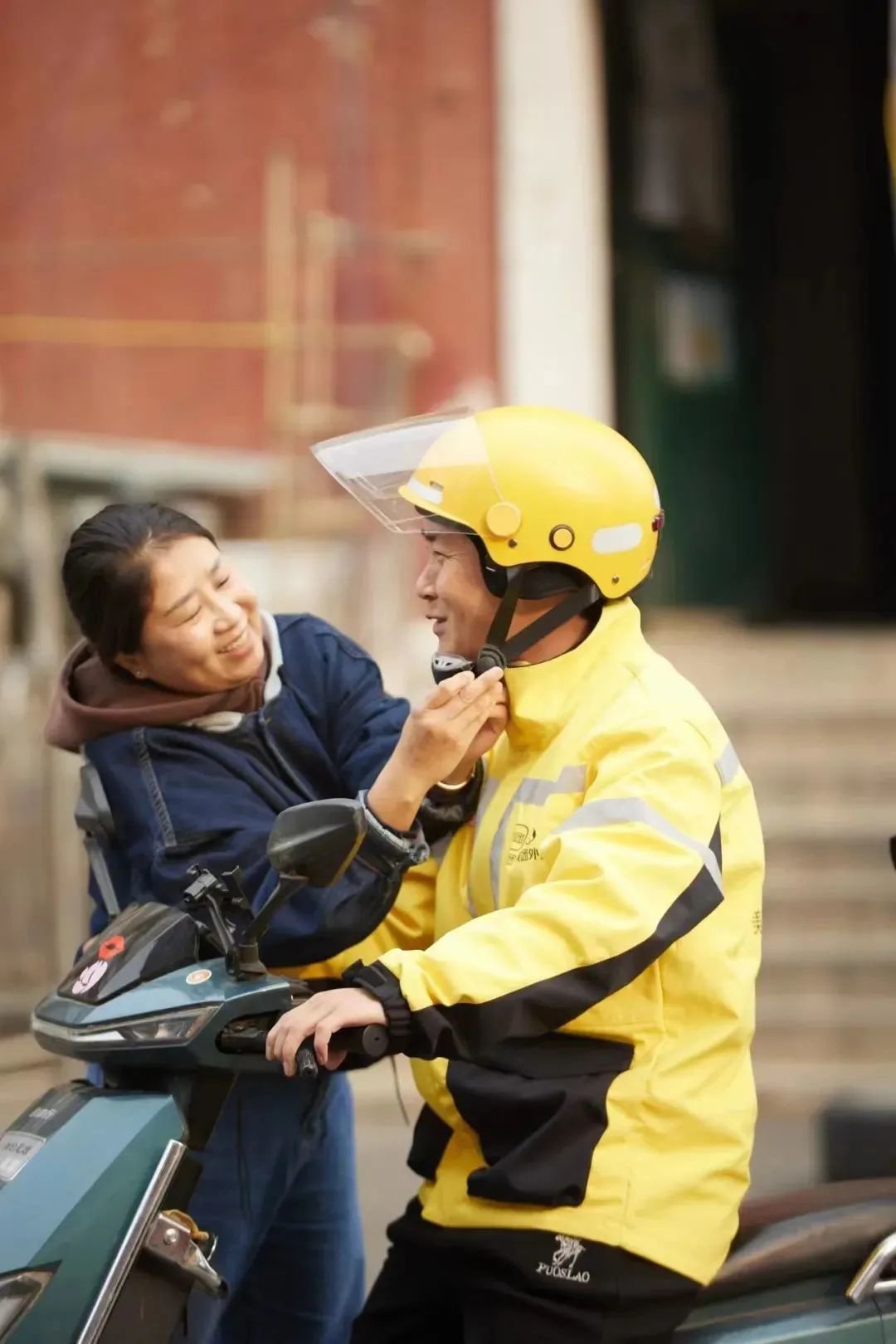 骑手在门口来来去去
