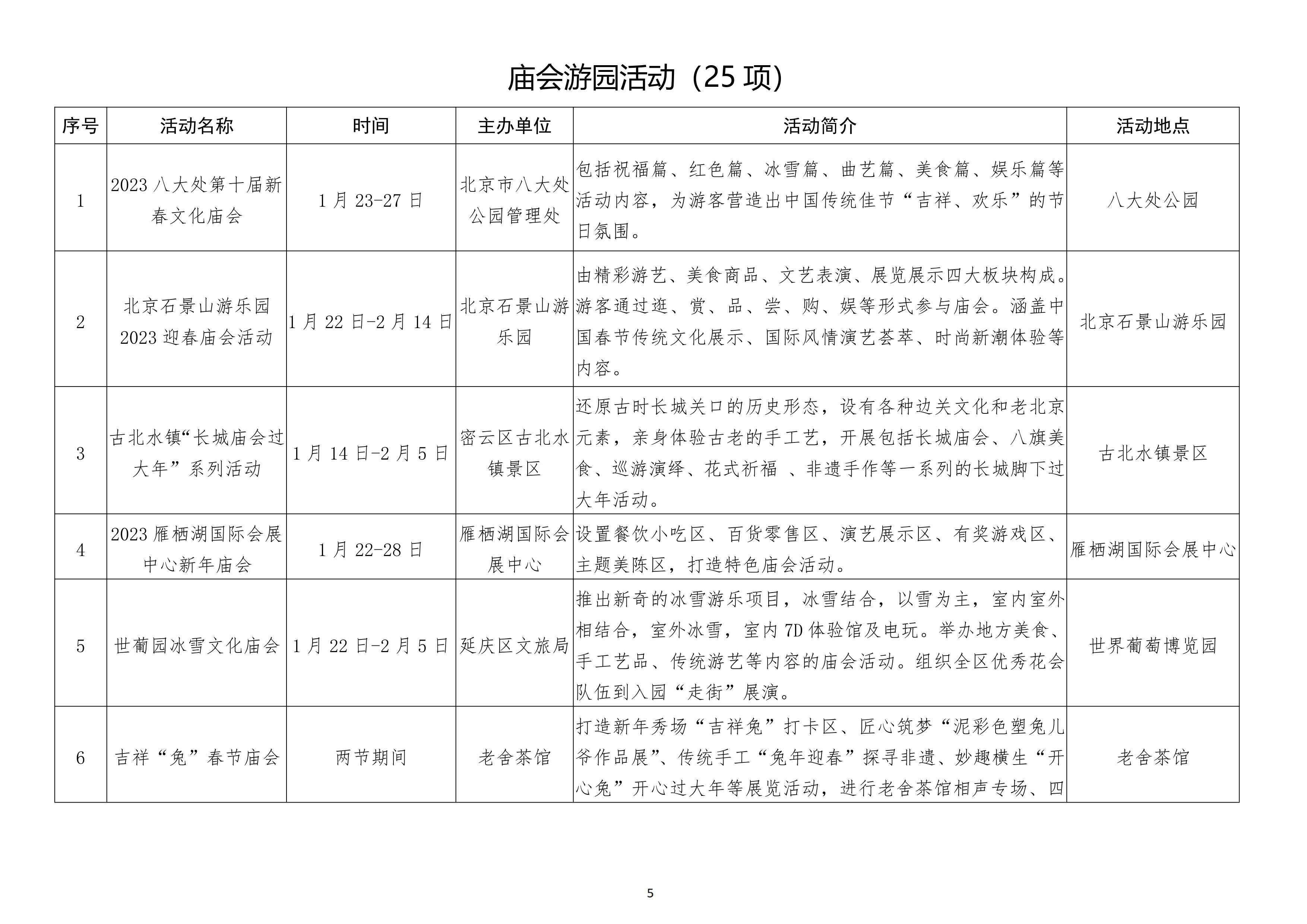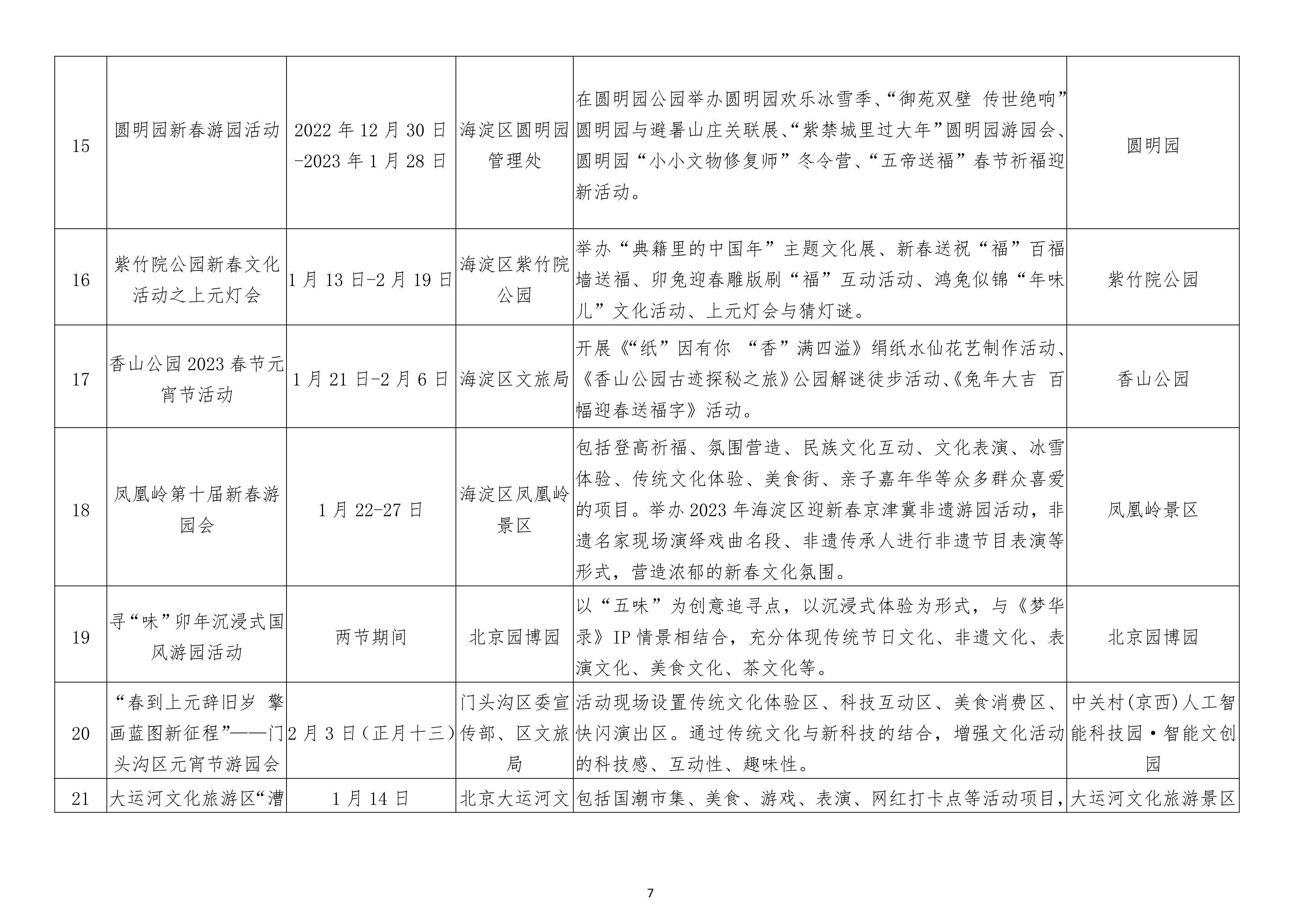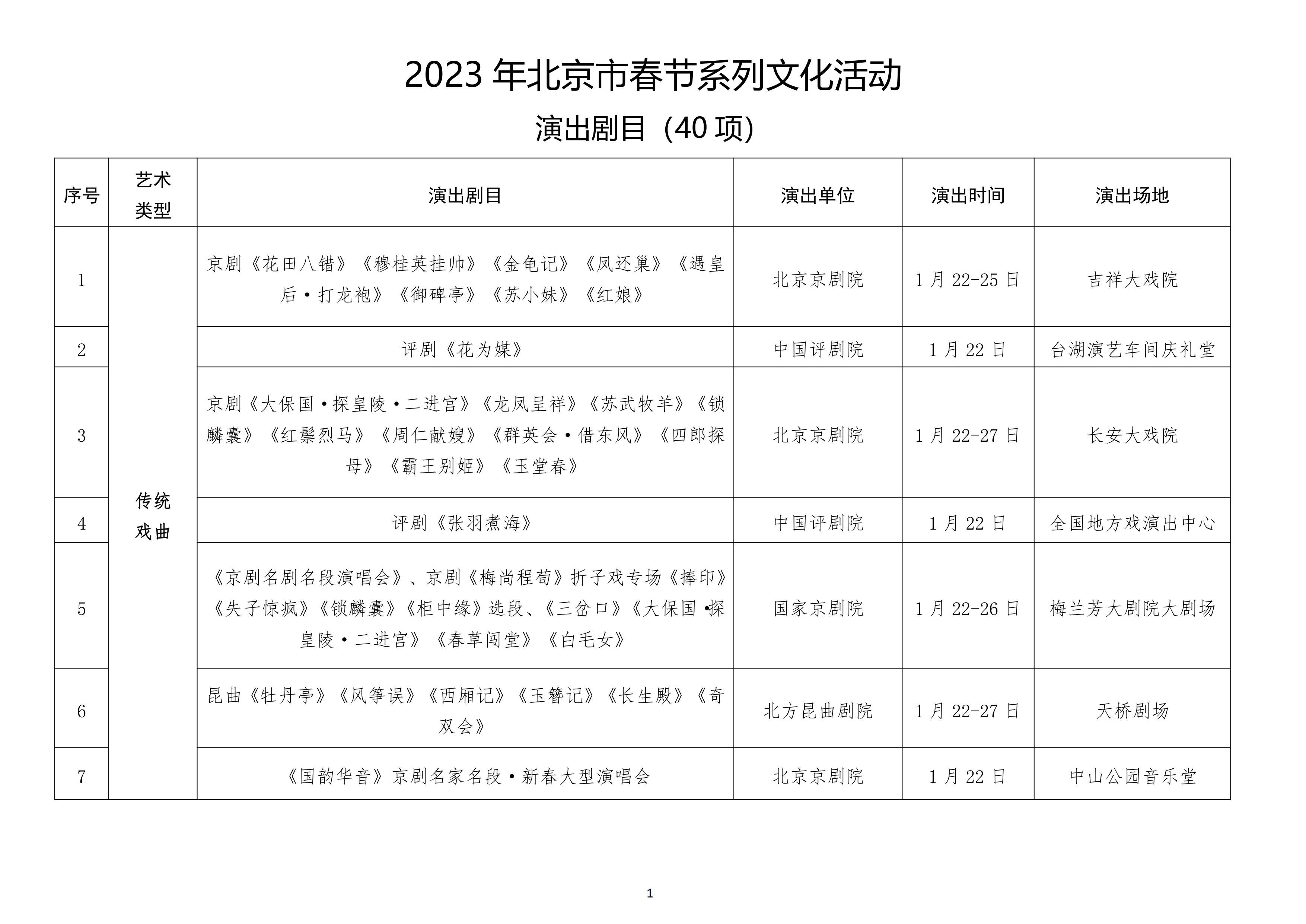 为方便市民合理安排时间游玩,以下为2023年北京市春节系列文化活动清单。