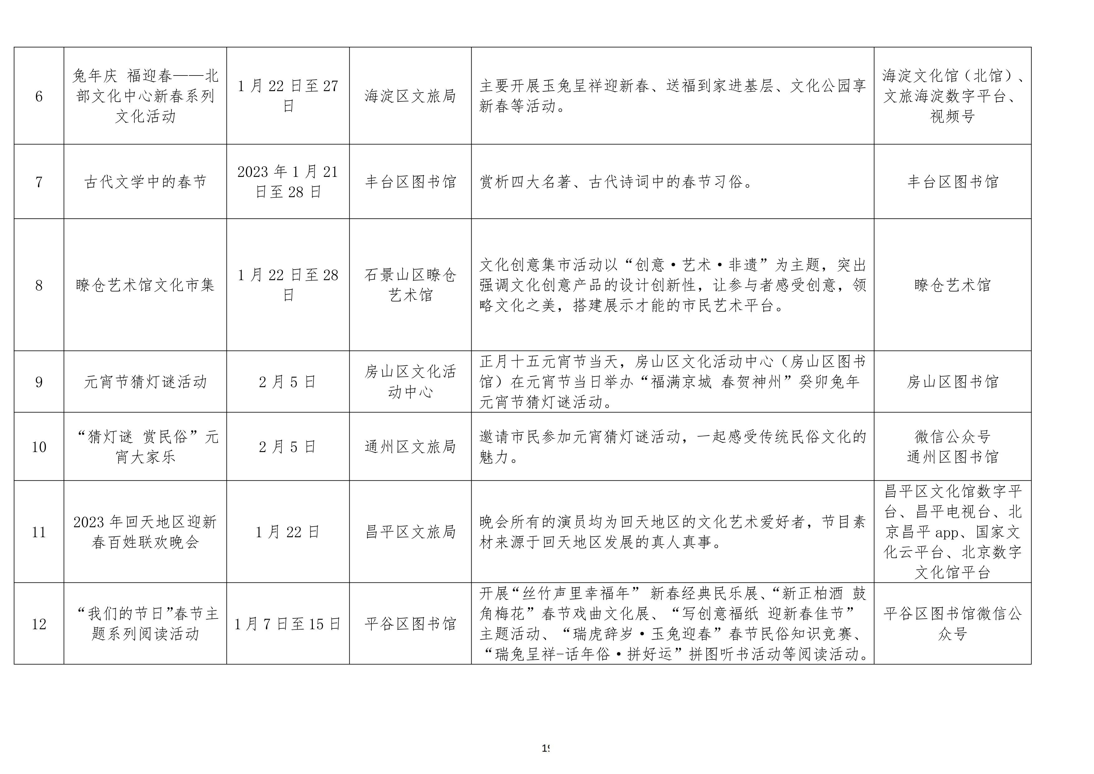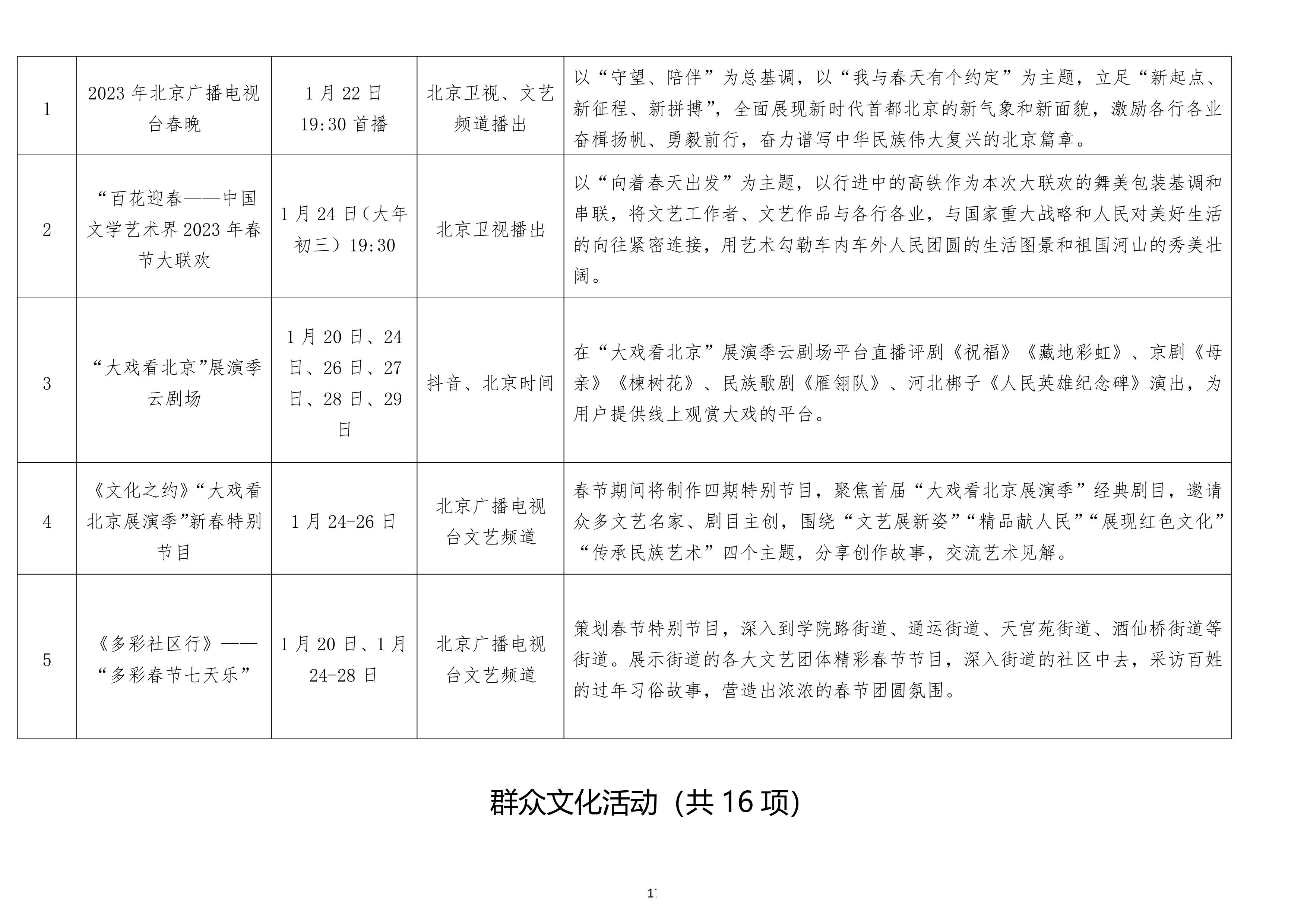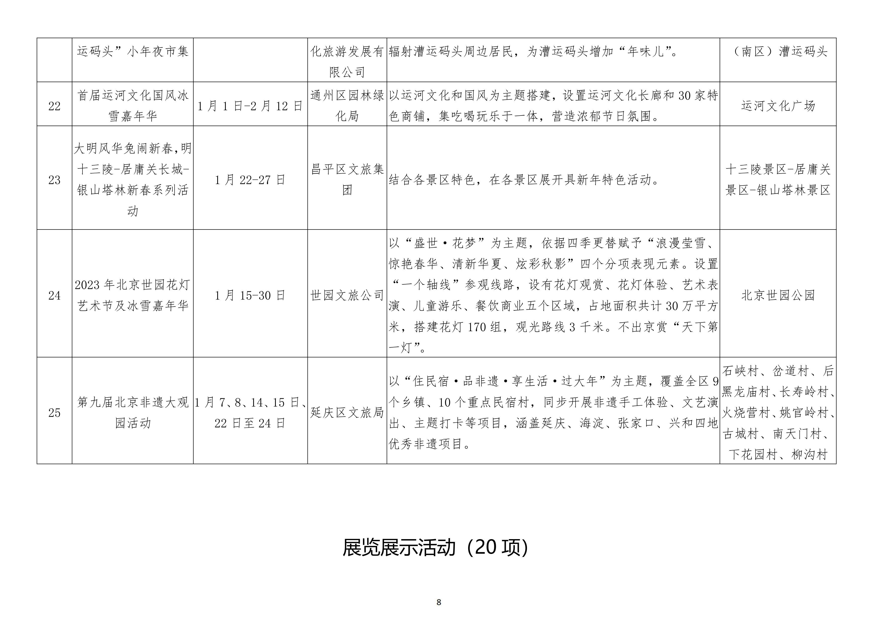 为方便市民合理安排时间游玩,以下为2023年北京市春节系列文化活动清单。
