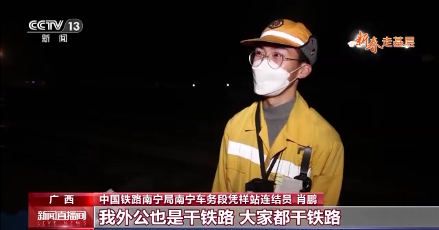中国铁路南宁局南宁车务段凭祥站连结员 肖鹏:干这活是挺枯燥的,但现在干活也是挺充实的。我爷爷干铁路,我爸也干铁路,外公也是干铁路,大家都干铁路,也算是有感情。