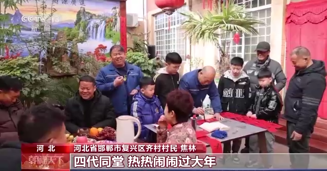 河北省邯郸市复兴区齐村村民 焦林:我们全家15口人都聚齐了,四代同堂。热热闹闹过大年。
