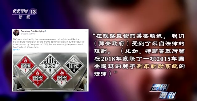 “在铁路监管的某些领域,我们(拜登政府)受到了来自法律的限制。比如,特朗普政府曾在2018年废除了一项2015年国会通过的关于列车制动系统的法律”。