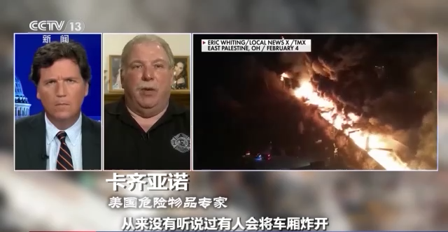 美国危险物品专家 卡齐亚诺:在我从业39年来,从来没有听说过有人会将车厢炸开,把所有的化学物质倒进沟渠并点燃它,我当时简直目瞪口呆。