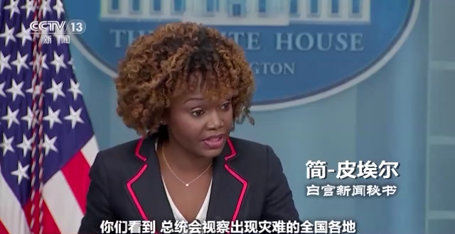 白宫新闻秘书 简-皮埃尔:你们看到,总统会视察出现灾难的全国各地,但这一次的情况不太一样。
