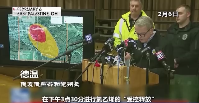俄亥俄州共和党州长 德温:诺福克南方铁路公司计划在15时30分进行氯乙烯的“受控释放”。“受控释放”可能会对吸入者造成致命伤害。