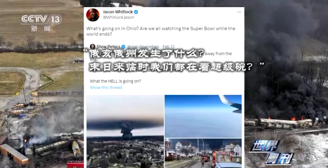 2月13日,美国体育记者惠特洛克在推特发文:“俄亥俄州发生了什么?末日来临时我们都在看超级碗?”