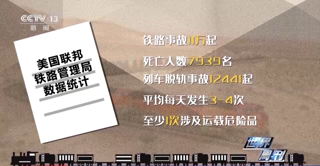 据美国联邦铁路管理局的数据统计,过去10年间,美国共发生铁路事故11万起,死亡人数7939名。其中列车脱轨事故12441起,意味着平均每天就发生3-4次,至少有1次涉及运载危险品。