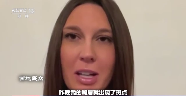 当地民众:我昨天短暂地进入了一下我的房子,也就大约10分钟左右,昨晚我的嘴唇就出现了斑点,颜色发生了变化,我的脸上也出现了亮红色的斑块。