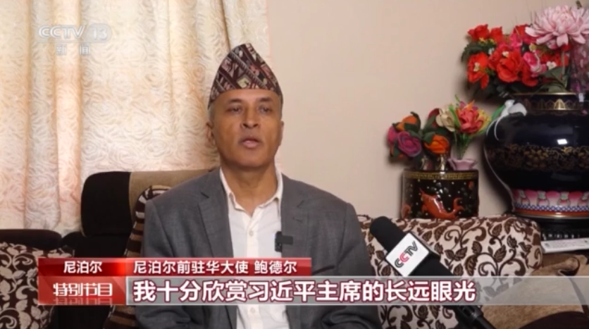 尼泊尔前驻华大使 鲍德尔:我十分欣赏习近平主席的长远眼光,带领中国秉持和平发展、开放合作的理念走在世界发展的前列。他乐于向全世界分享中国的发展成果和经验,中国的发展成果将使包括尼泊尔在内的全世界受益。