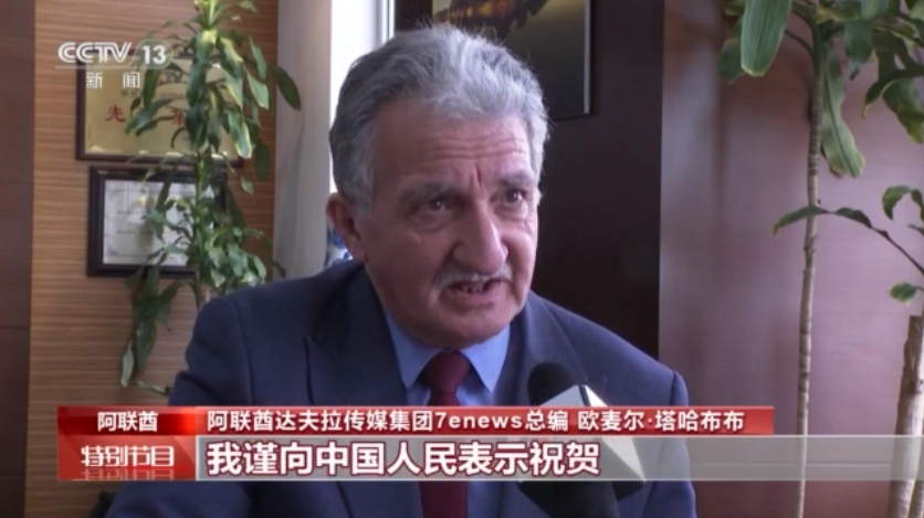 阿联酋达夫拉传媒集团7enews总编 欧麦尔·塔哈布布:值此习近平当选中华人民共和国主席之际,我谨向中国人民表示祝贺。习主席带领中国成功克服过去几年的难题挑战,他将能带领中国取得进一步发展,更好地应对挑战。