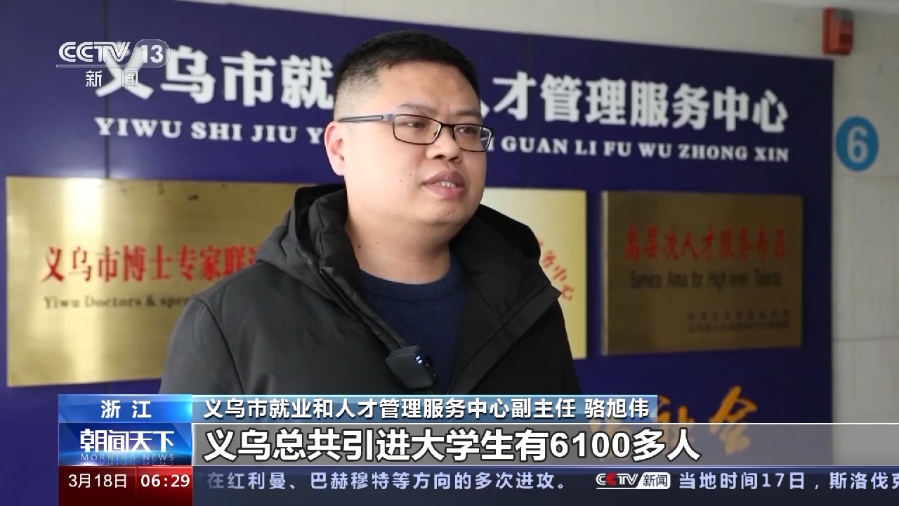义乌市就业和人才管理服务中心副主任 骆旭伟:今年到目前为止,义乌总共引进大学生有6100多人,下一步我们针对企业的需求,要频繁开展高校的招聘活动。2023年的计划应该是要带义乌的企业走100所以上的高校。
