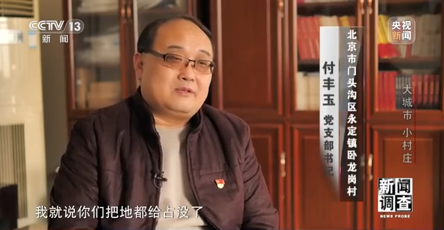 北京市门头沟区永定镇卧龙岗村党支部书记 付丰玉:村里没什么发展,说实话,从2004年就确权确地,整体流转,然后年底村里根据收益给你分红。2015年我们就没剩什么地了,所以老百姓也找我,我们也找(区里),我就说你们把地都给占没了,我们村子怎么办?