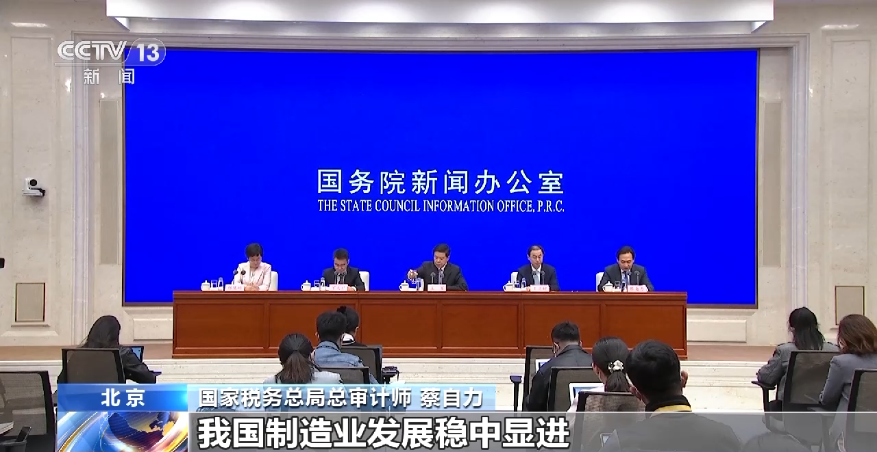 国家税务总局总审计师 蔡自力:在税费等支持政策共同作用下,我国制造业发展稳中显进。2018—2022年,制造业企业销售收入年均增长9.4%;制造业采购智能、研发和节能设备金额年均增长13.5%。2022年,全国制造业增加值占GDP比重为27.7%,比2020年提高1.4个百分点,呈现了稳中有进、进中提质的势头。