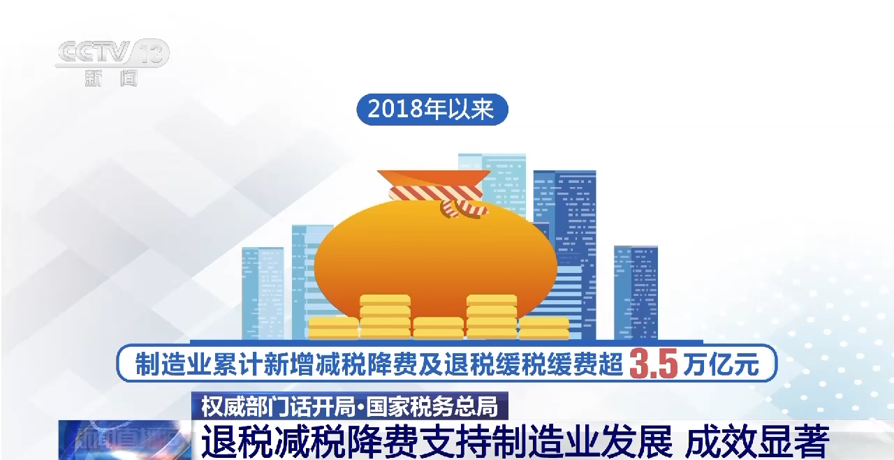 在今天(6日)国务院新闻办公室举行的“权威部门话开局”系列主题新闻发布会上,国家税务总局有关负责人表示,近年来,我国实施的一系列退税减税降费举措,有力支持了制造业发展,成效显著。