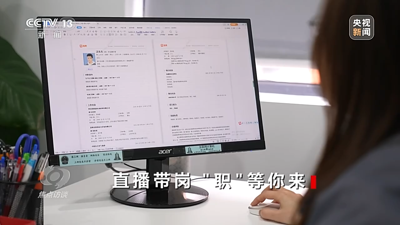 直播带岗主播 叨叨姐:播完以后效果非常非常好,每一场场观人次在30万以上。当时播了3场我们昆山的某一家龙头企业,我们收到了2000份简历。我们当时以招普工和技工为主,是一线的蓝领工人,发现新媒体招聘这个手段反而更快捷。