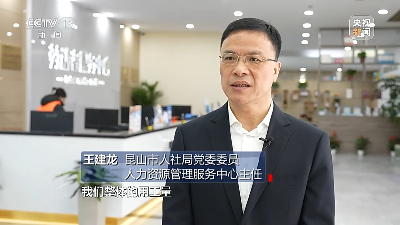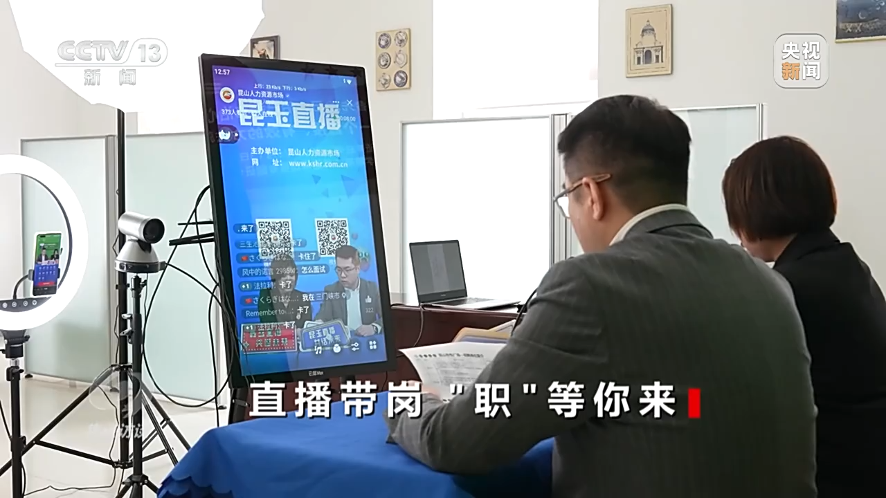昆山市人社局党委委员、人力资源管理服务中心主任 王建龙:“我们每年新到昆山的用工量要达到30万到40万人,我们整体的用工量可能要达到180万到200万人之间,所以说昆山这种直播带岗的模式做得比较多。”
