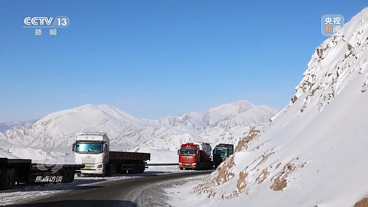 3月,天山上依然白雪茫茫,翻越天山的道路因冬季而封闭,要想从南疆到北疆,只能开上山至海拔3000多米后再绕行。然而,一天前的大雪,导致道路结冰,这些货车被滞留在了半山腰。
