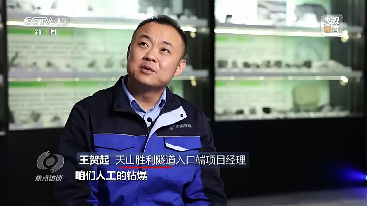 天山胜利隧道入口端项目经理 王贺起:比较活跃,能引起一个7.5级到8级强震的断层。