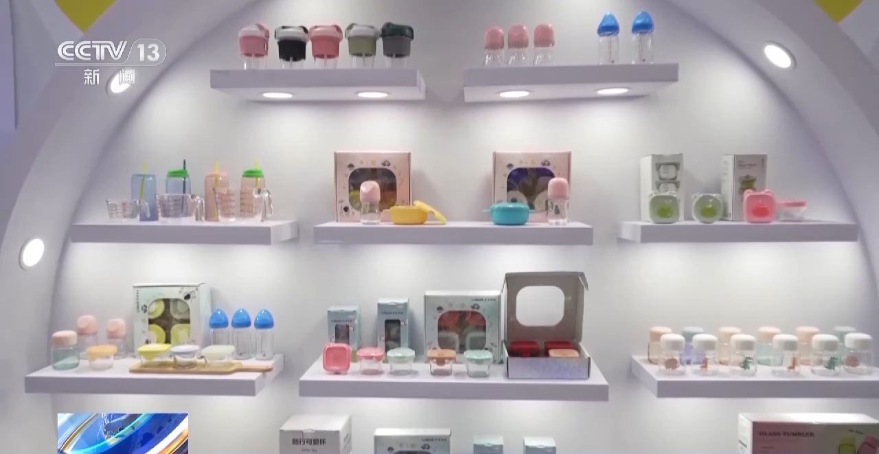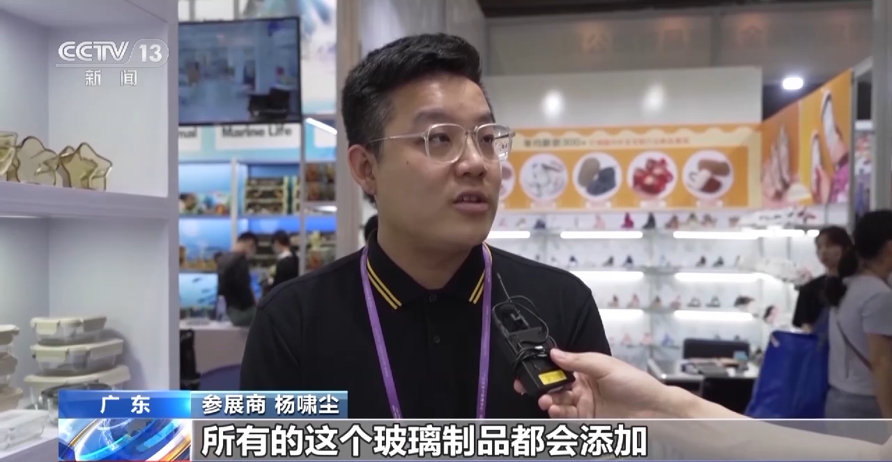 参展商 杨啸尘:我们在整个生产的过程中,所有的玻璃制品都会添加一些之前的玻璃废料,大概是20%到30%。除了玻璃本身,像我们配套的玻璃保鲜盒,它的盖子里边是添加了很多像废木屑等等一系列可回收的材质,也是非常受欢迎。
