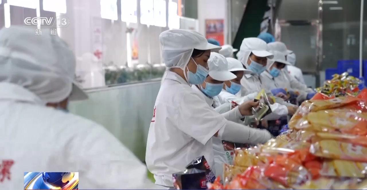 广西善元食品有限公司董事长 陈生:我们日均产能可以达到22万包。目前自主研发了一套系统,已经实现了外包装全自动化。通过设备自动化的升级,人均产量提高到每小时600包,产能提高了2.8倍。