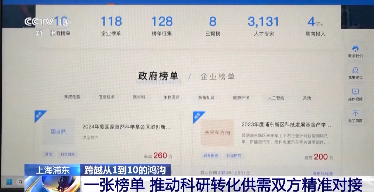 面对横亘在科研和产业间的鸿沟,科研力量雄厚的上海正在寻求破解之道。最近,浦东新区就发布了一张精准对接科研转化供需双方的榜单,效果如何?一起来看记者的调研。
