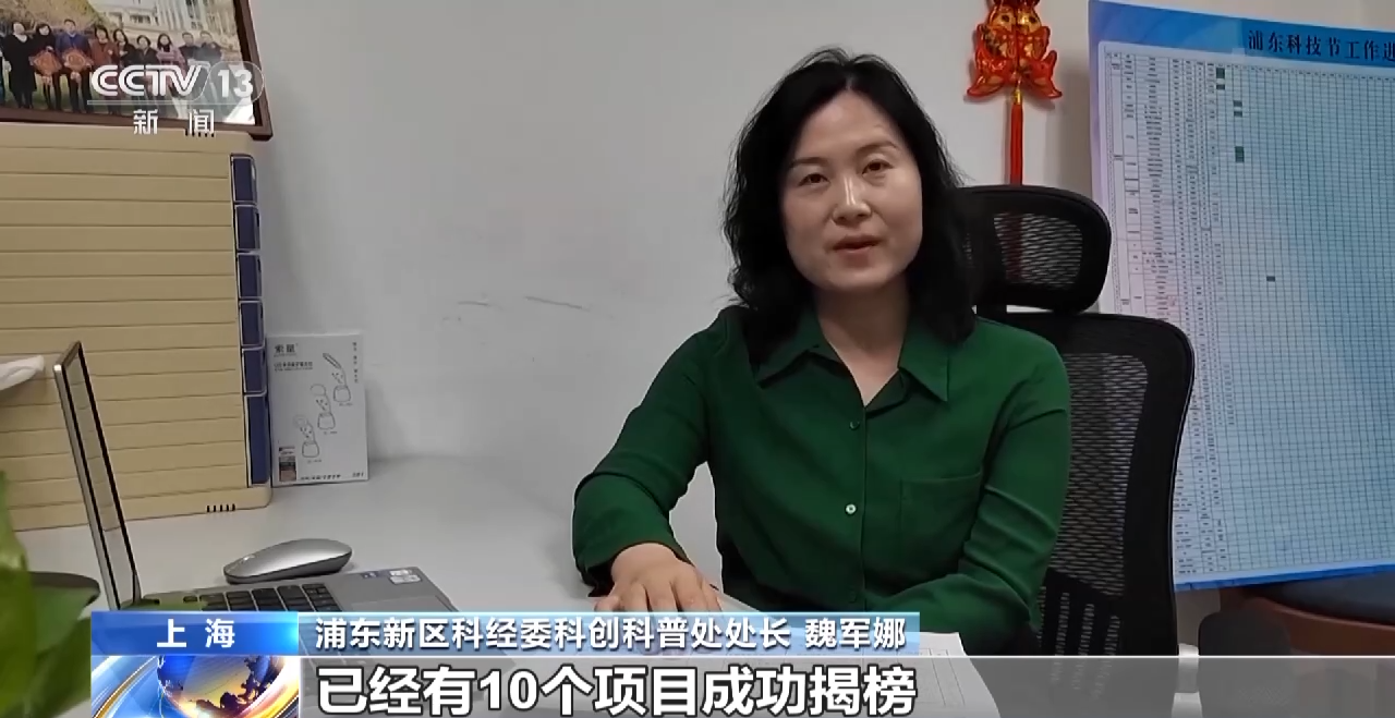 上海浦东新区科经委科创科普处处长 魏军娜:效果还是非常明显的,短短几个月时间,已经有10个项目成功揭榜,有17个项目收到揭榜方案或者是找到了意向揭榜方,还有更多的正在陆续对接中。揭榜的不仅有本地的科研机构,还有江苏等地一些院所。