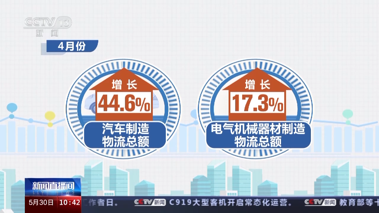 数据显示,今年1—4月份,社会物流总额延续扩大态势,多数领域物流总额增速有所加快。