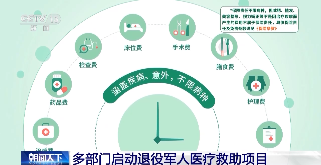 为重点解决退役军人家中有人患病或住院的医疗费用问题,近日,由中华慈善总会、中国退役军人关爱基金会及中国人寿等单位共同举办的“退役军人医疗救助项目”在京启动。与此同时,“退役军人家庭全年医疗费用保险卡”也正式上线。