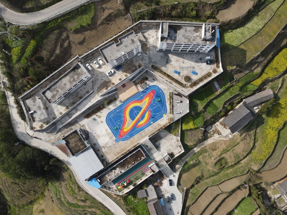 贵州省石阡县一所山村小学新完工的运动场。 新华社记者 郑明鸿 摄