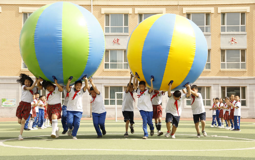 田家炳小学的孩子们在参加阳光体育大课间活动。(受访者供图)