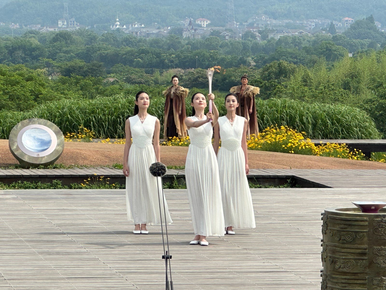 杭州亚运会迎来倒计时100天之际,今天上午,杭州亚运会火种在杭州良渚古城遗址公园大莫角山成功采集。