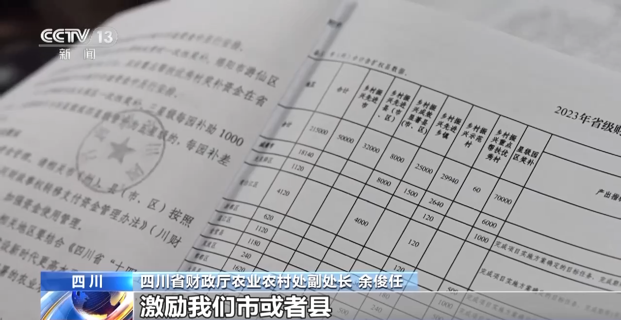 四川省财政厅农业农村处副处长 余俊任:这是一种后补助的形式,激励我们市或者县,要主动作为抓,主动投入到乡村振兴领域上去。做好了之后,省里再进行激励奖补,形成一种你追我赶的氛围。本质上是“你要他干”变为“我要干”这种方式,这个很有成效。
