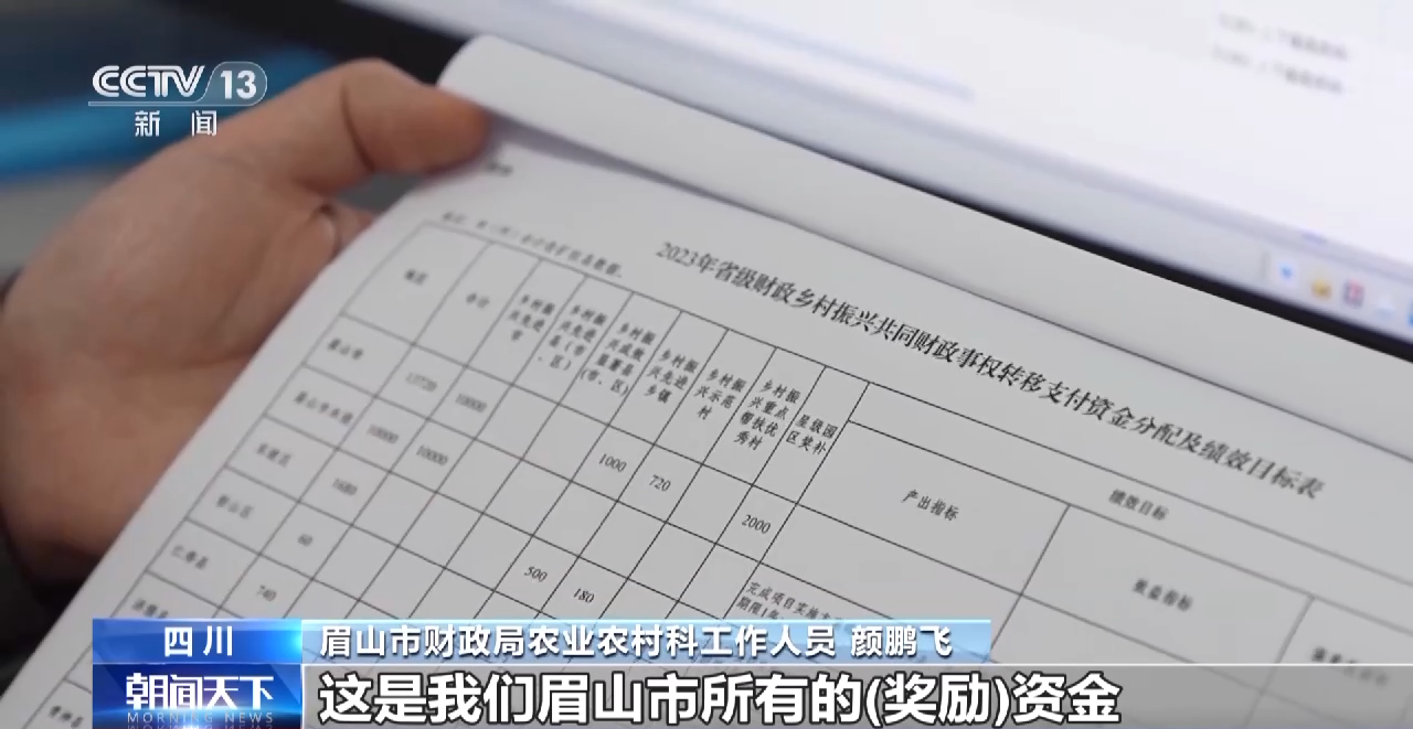 离开四川省财政厅,记者赶到眉山市财政局,见到了农业农村科的工作人员颜鹏飞,他们已经收到了省级的奖励资金。根据当地政府要求,2030年前,眉山要把184万亩基本农田全部建成高标准农田,资金压力非常大。这次眉山评上了2022年度的四川省乡村振兴先进市,颜鹏飞非常激动。