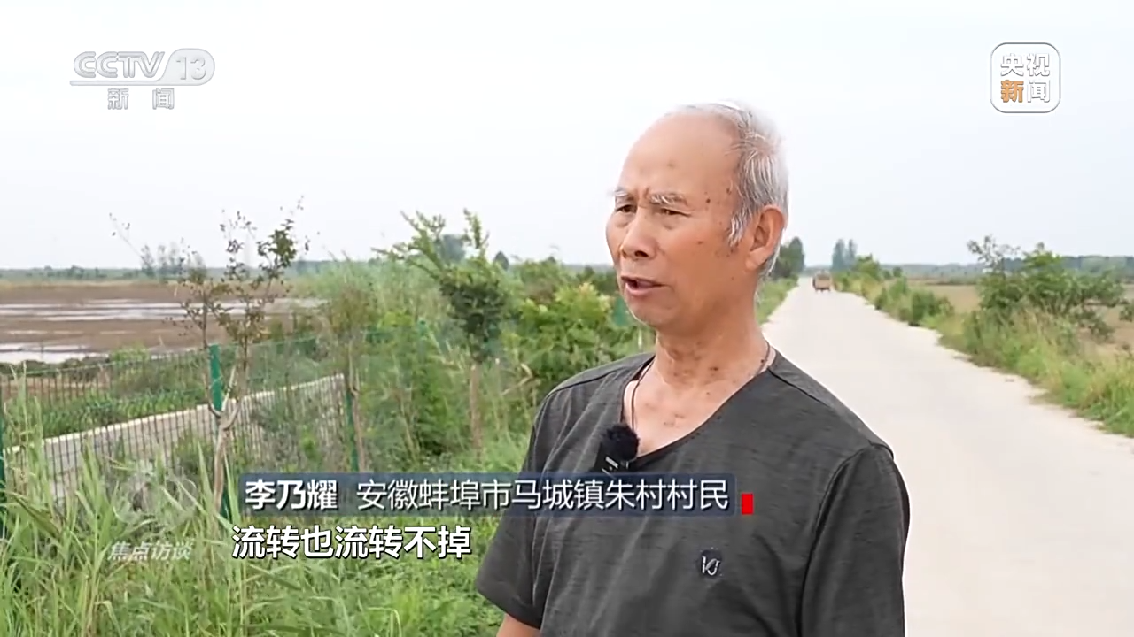安徽蚌埠市马城镇朱村村民 李乃耀:我家的地原来都是抛荒的,流转也流转不掉,自己种也不划算,种粮大户也不愿意要。