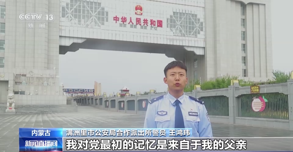 内蒙古自治区满洲里市公安局合作派出所警员 王鸿玮:我对党最初的记忆,是来自于我的父亲,我的父亲是一名警察,也是一名老党员。在来到警营之后,我看到许多的前辈、同事们都是共产党员,为我们后辈青年诠释着榜样的力量。