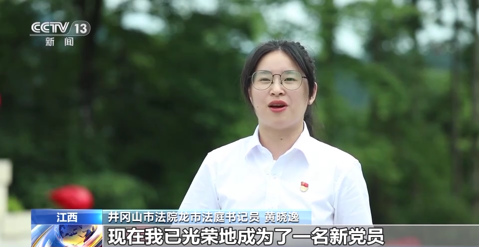 江西省井冈山市法院龙市法庭书记员 黄晓逸:现在我已光荣地成了一名新党员,我感到非常地激动。