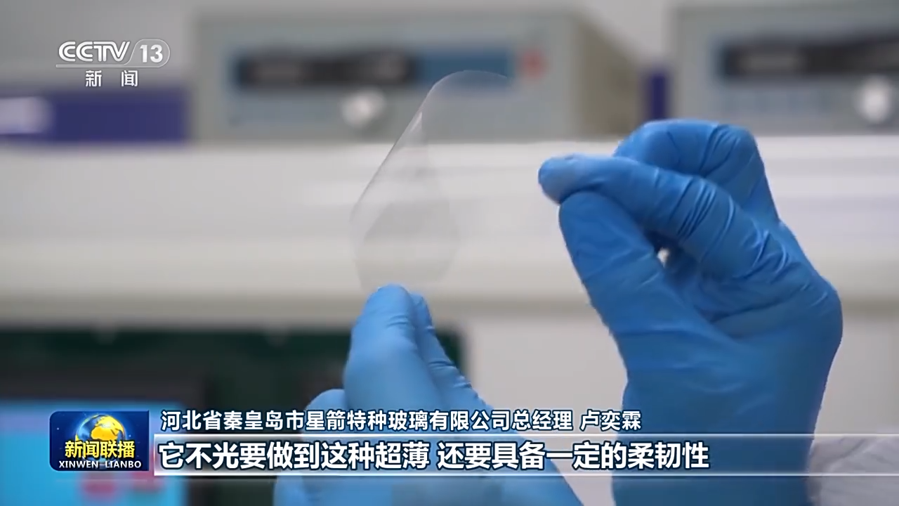 河北省秦皇岛市星箭特种玻璃有限公司总经理 卢奕霖:它不光要做到这种超薄,还要具备一定的柔韧性,同时要在1000摄氏度的高温下长时间使用。