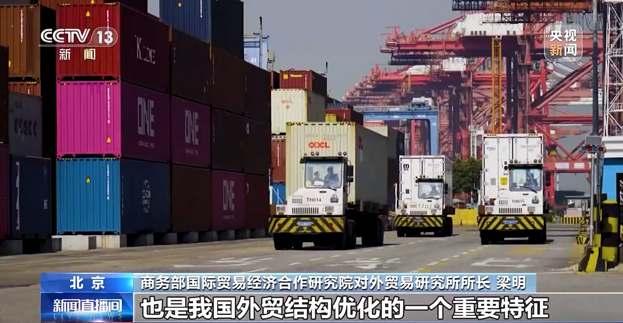 商务部国际贸易经济合作研究院对外贸易研究所所长 梁明:民营企业进出口的增速是明显好于我们外贸整体增速的,民营企业外贸进出口总额的规模占我国外贸总规模的比重,始终在一半以上,不仅发挥了外贸稳定器的作用,也是我国外贸结构优化的一个重要特征。