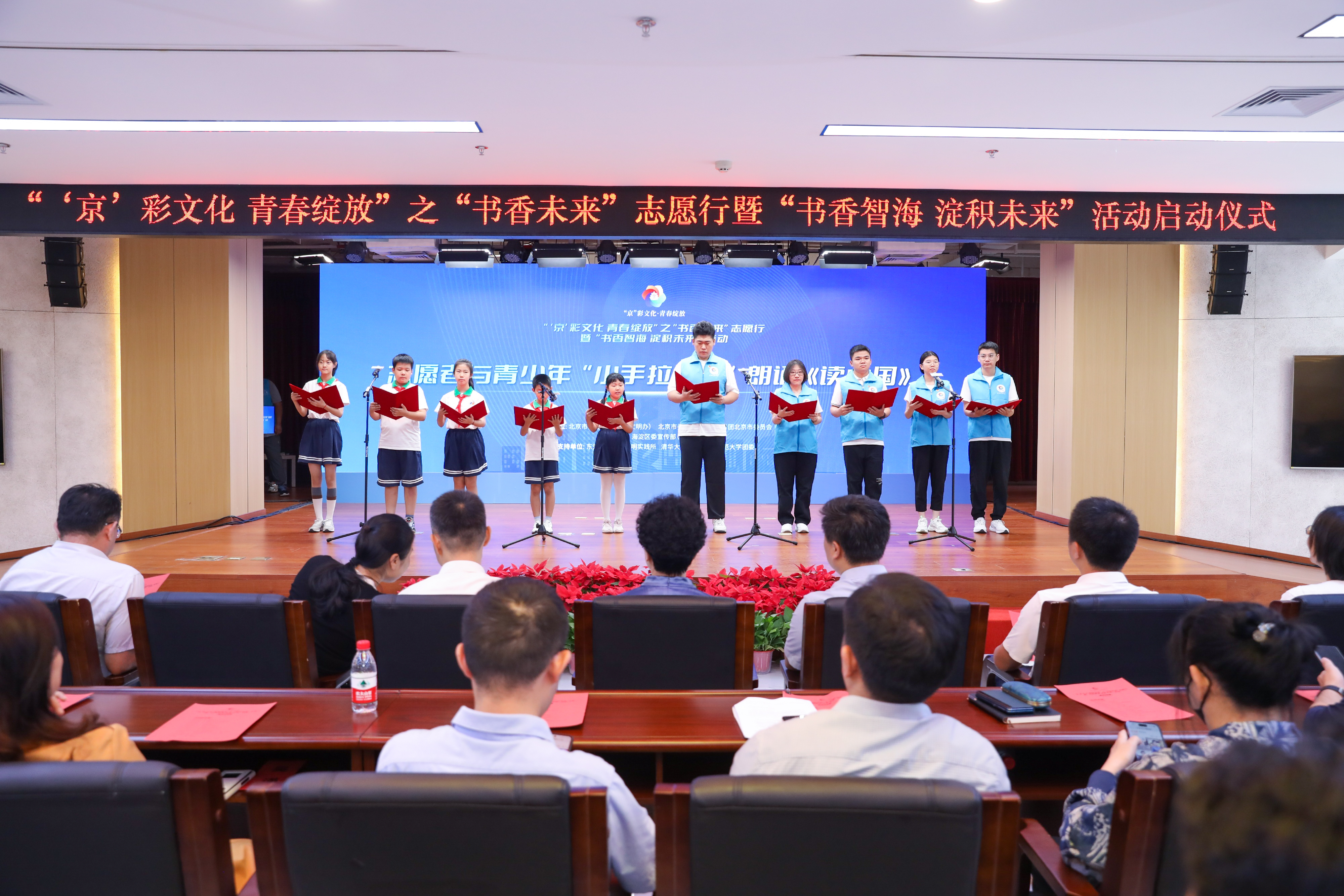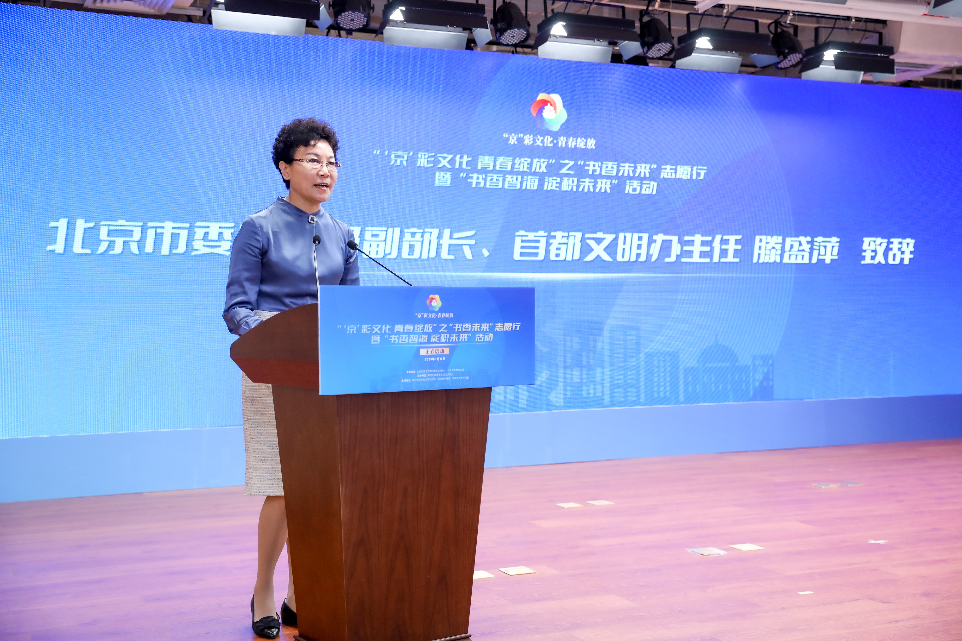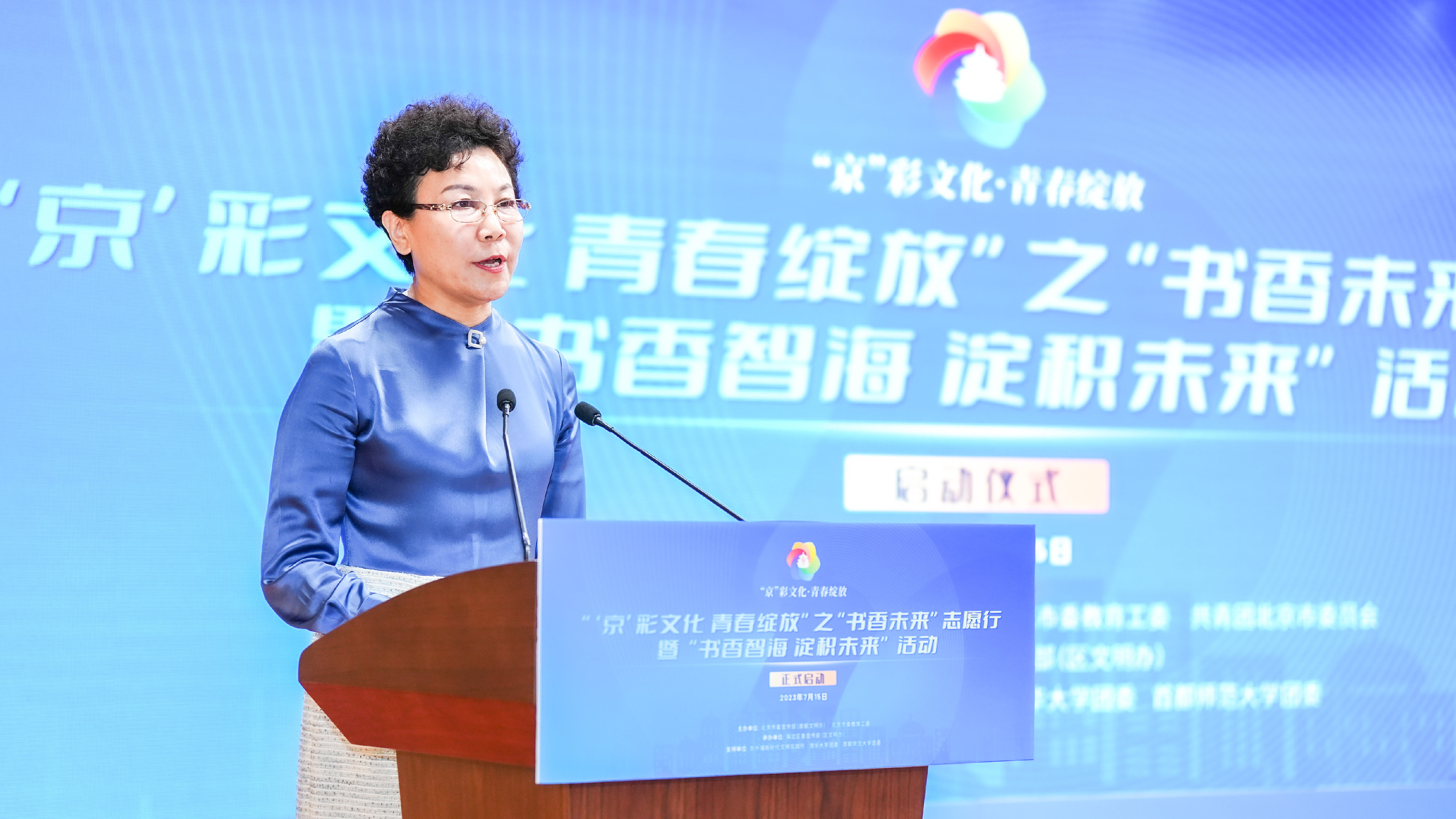 7月15日上午,由北京市委宣传部、市委教育工委、团市委主办、海淀区委宣传部承办的“‘京’彩文化 青春绽放”之“书香未来”志愿行暨“书香智海 淀积未来”活动启动仪式在海淀区东升镇举行。