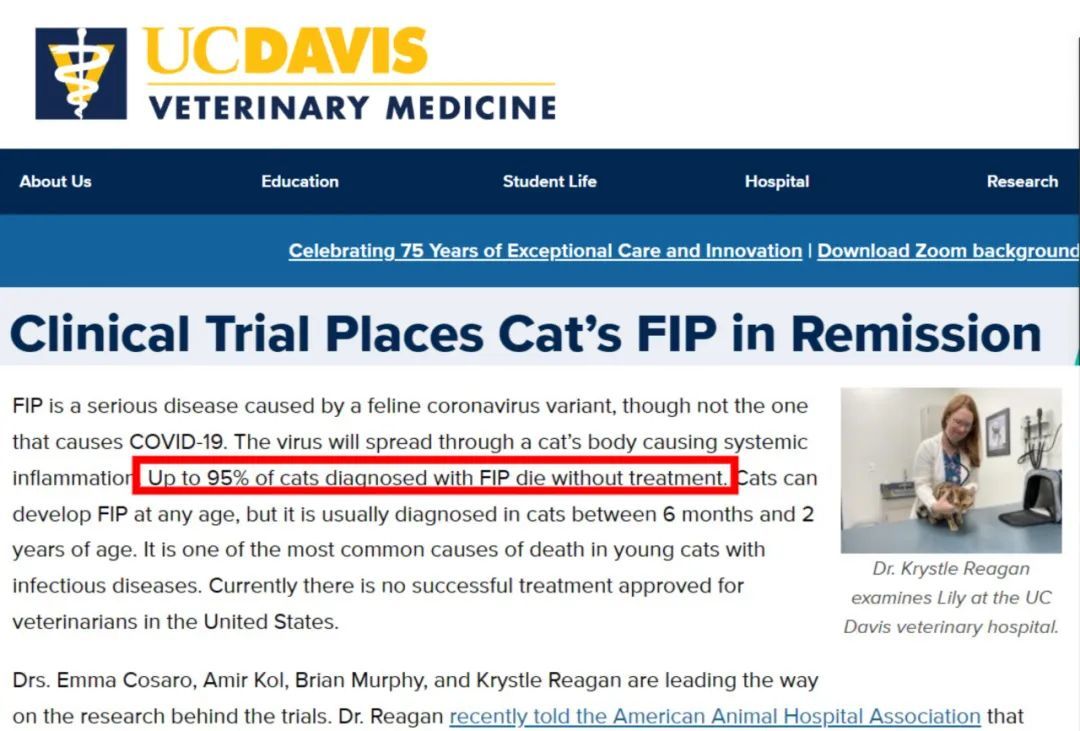 通过376和441的治疗,再加上猫自身免疫系统对病毒的清除,确实有很多猫可以实现临床治愈。即便在美国最早的临床试验当中,20只实验猫中的19只在使用GC376后,状况就得到改善了。