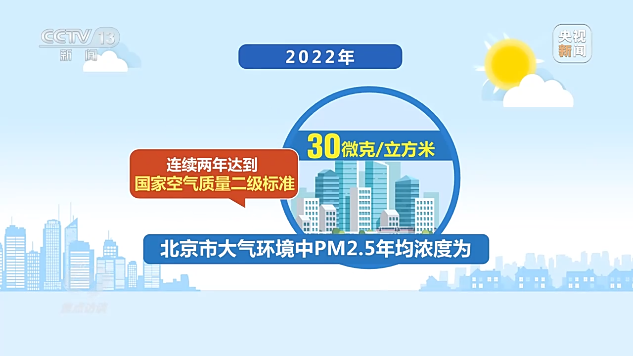 不仅北京,十年来,全国重点城市PM2.5平均浓度下降57%。2022年,全国地级及以上城市空气质量优良天数比例为86.5%,重污染天数比例首次下降到1%以内。我国成为全球大气质量改善速度最快的国家,蓝天保卫战正在给百姓带来实实在在的幸福感。