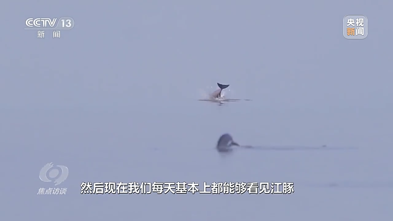 湖南岳阳市岳阳县渔政监察执法局麻塘中队队长 杨艾:洞庭湖现在的水越来越美了,鱼类越来越多了。比如说江豚,以前看见江豚的数量比较少,现在每天基本上都能够看见江豚。