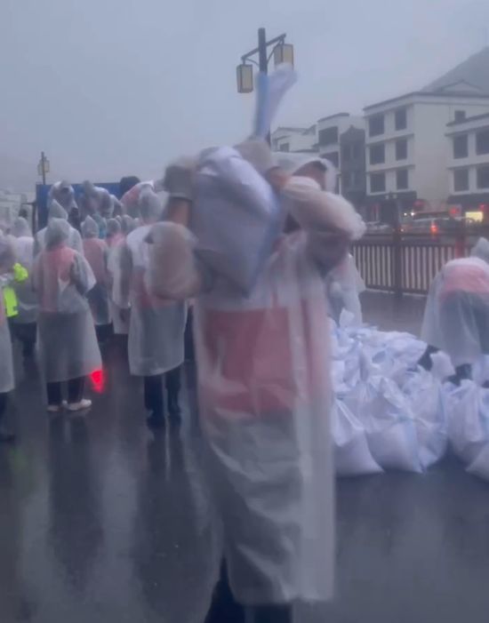 “加快速度装好沙包!”“一个一个往后传!”按照钱排镇政府的统一部署,在保证安全的前提下,200余名学生志愿者参与沙袋填装、搬运和堆叠等台风防御工作。