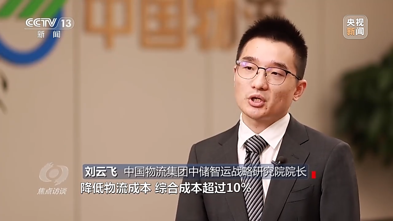 中国物流集团中储智运战略研究院院长 刘云飞:作为全国一家数字物流的基础设施平台,通过一系列技术手段和能力,为平台上的货主企业降低物流成本,综合成本超过10%,为货车司机减少找货时间达到69%,物流成本如果通过一系列手段在降低,对于企业来说就是帮它创造利润。