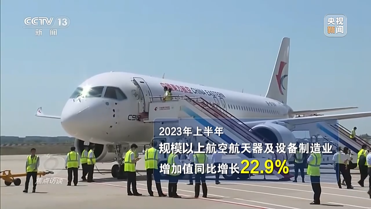 继今年5月28日国产大飞机C919从上海开启首次商业载客飞行之后,7月16日,中国东方航空公司在上海正式接收第二架国产C919客机,随着国产大飞机实现商业航行,其对于上下游产业链的带动作用逐步增强。上半年,规模以上航空航天器及设备制造业增加值同比增长22.9%。各方面加强半导体等重点领域、关键环节的技术攻关,相关生产高速增长。上半年,半导体器件专用设备制造、电子元器件及机电组件设备制造同比分别增长30.9%和46.5%。