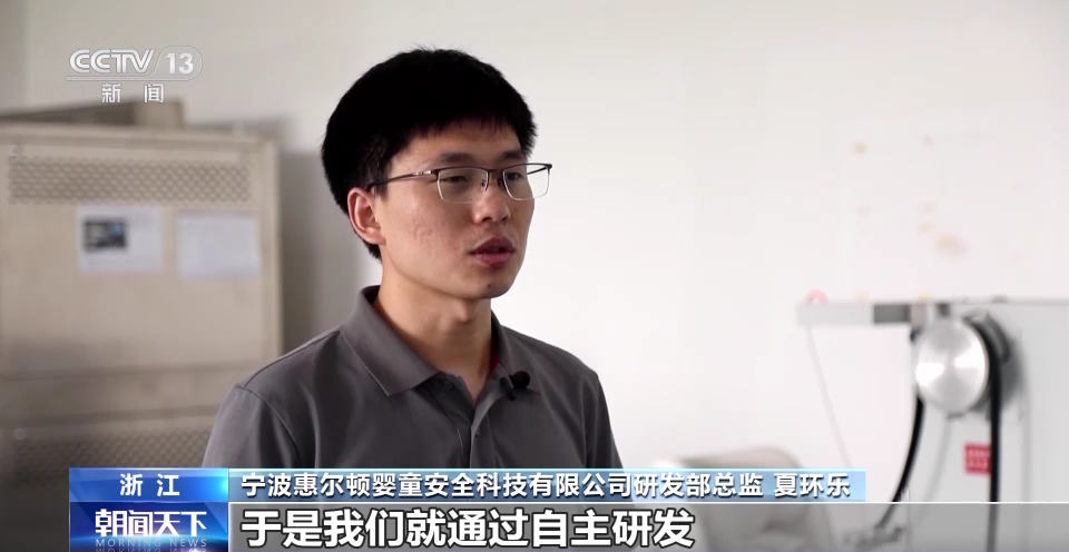 宁波惠尔顿婴童安全科技有限公司研发部总监 夏环乐:比如产品测试要求方面,国内的现行标准不要求侧碰,但是欧洲就要求侧碰试验。而且两种测试所使用的假人、传感器也不相同;于是我们就通过自主研发,采用侧面防撞缓冲机构,突破了不同测试假人和不同条件的限制,使我们的产品可以同时满足两种标准的要求。