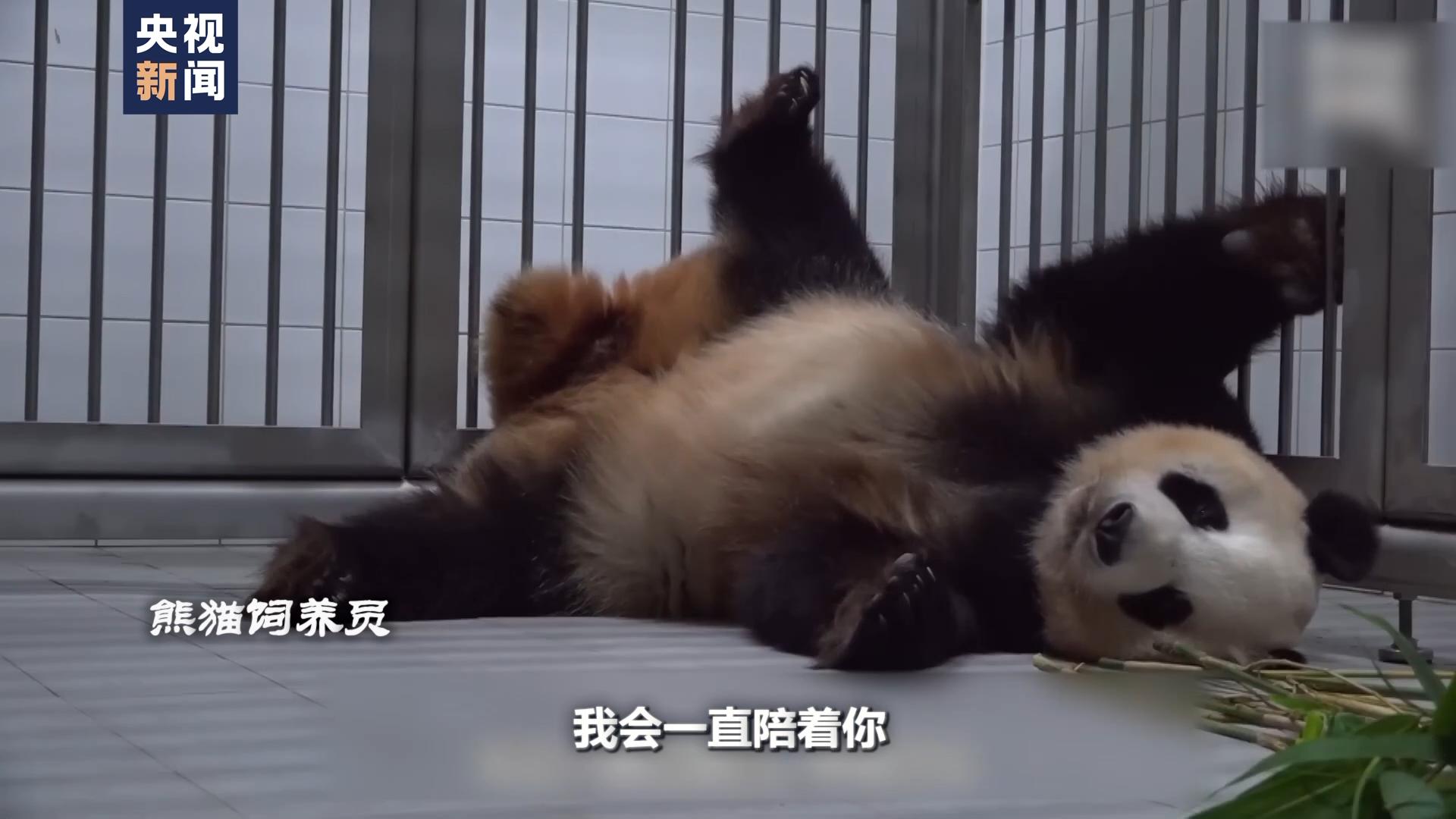 熊猫饲养员:爱宝,我会一直陪着你,不要担心。