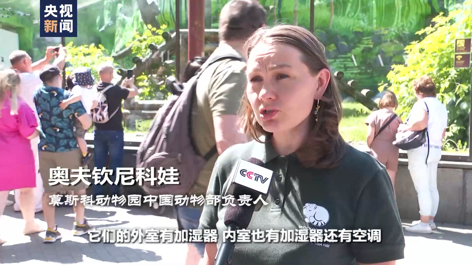 莫斯科动物园中国动物部负责人 奥夫钦尼科娃:我们给大熊猫如意和丁丁在这里舒适生活创造了一切条件。它们的外室有加湿器,内室也有加湿器还有空调,过得非常舒服。而且它们喜欢我们的气候,冬天并不酷寒。