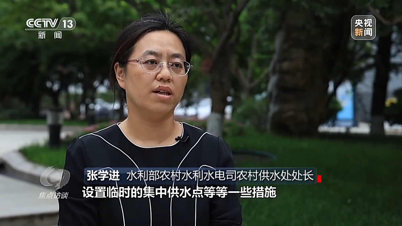 水利部农村水利水电司农村供水处处长 张学进:我们采取临时拉水、送水,设置临时集中供水点等措施,千方百计保证农村居民的生活饮用水需要,同时还采取了一些超常规措施,组织统一调配力量,做好损毁的农村供水设施的紧急抢修,力争尽快恢复供水,尽一切力量督促地方进一步落实应急供水、水质保障。